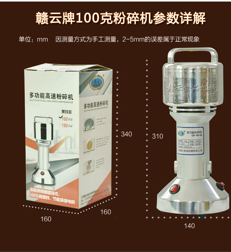 主頁-> 小設備折扣區->100克直立螺紋粉碎機