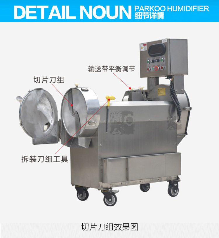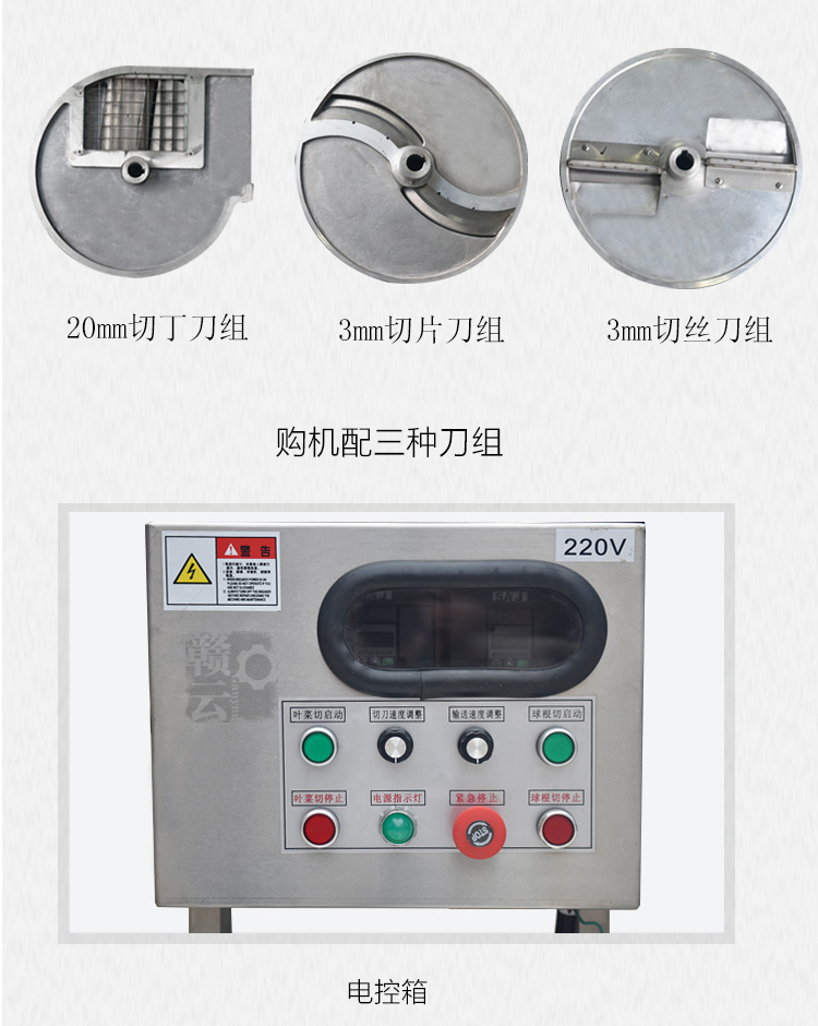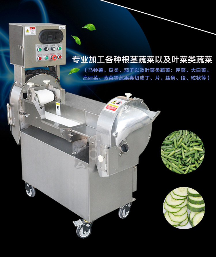 名稱:多功能數字切菜機,又稱之為數字雙頭切菜機、多功能數控切菜機、多功能調速切菜機等 用途:將根莖類蔬菜:馬鈴薯、蕃薯、瓜類、竹筍、洋蔥、茄子以及葉菜類蔬菜:芹菜、大白菜、高麗菜、菠菜等蔬果類切成丁、片、絲條、段、粒狀。