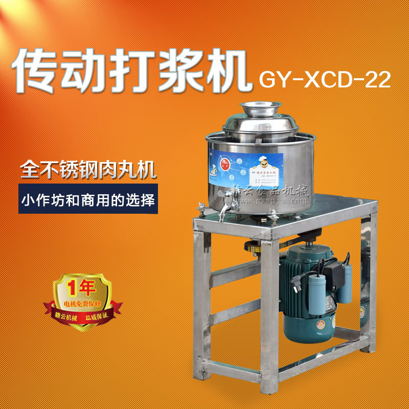 贛云牌全不銹鋼傳動高速肉丸打漿機,整機采用優質不銹鋼材質,拉伸桶底部弧形設計,贛云新款肉丸打漿機標志性設計。無縫焊接技術展現高檔品質。一次性可打肉漿4-5斤,2分鐘左右即可完成肉漿的制作。所打肉漿細膩,是肉丸專用打漿設備之一。