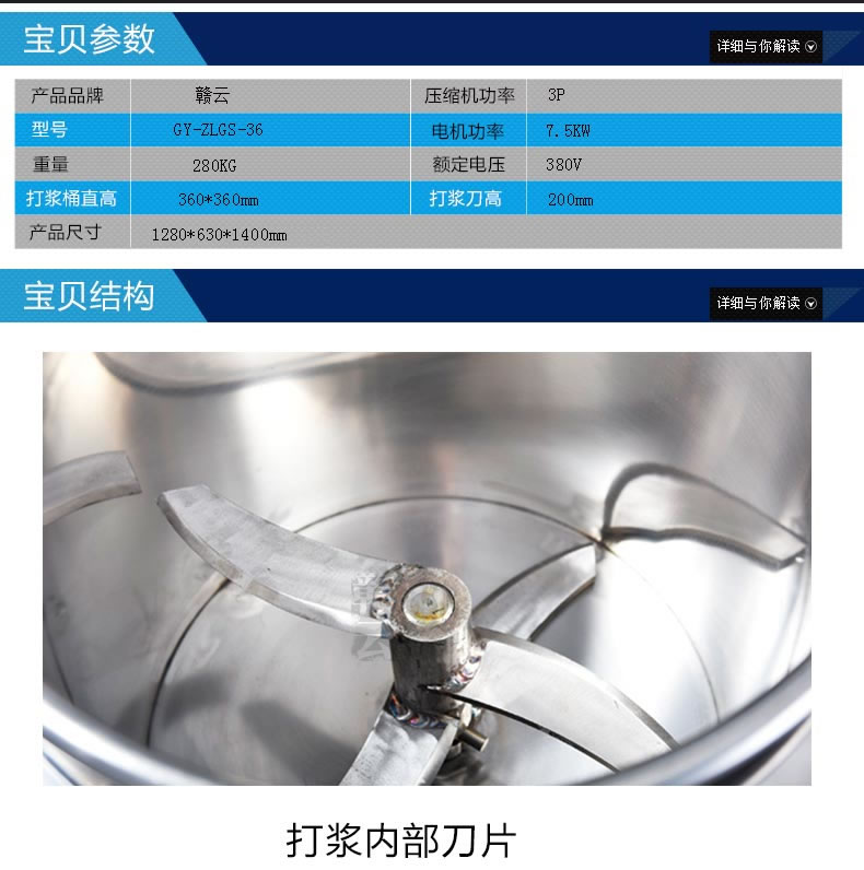 肉丸打漿機(jī)械->傳動(dòng)高速打漿機(jī)->36型高速制冷打漿機(jī) | |||||||