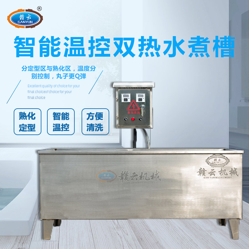 GY-ZW-1500型自動恒溫定型熟化水槽,也叫智能溫控雙加熱水槽,是我公司新設計開發的,一款適用于貢丸、包心肉丸、獅子頭、墨魚丸、實心肉丸、蔬菜丸子、米果丸子等定型熟化加熱用水槽。