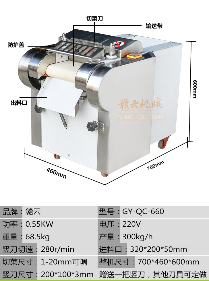 贛云牌多功能切菜機是根據多種樣機在實地使用中存在不足之處,反復改進設計制造,采用不銹鋼和全滾動軸承結構,具有外形美觀,成熟可靠,使用維修方便等特點。適用直蔬菜脫水、速凍、保鮮、腌漬等食品行業各類蔬菜。刀片距離可調節在0.1cm-2cm之間即切片、丁、絲厚薄在0.1cm-2cm。