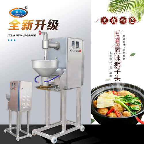 獅子頭機又名為大肉丸成型機,能做直徑45mm-65mm范圍的大肉丸,成型效果好,圓度好,表皮光滑,結實有彈性,是獅子頭成型推薦設備。采用雙速電機分別控制成型速度,可調性靈活,操作簡單。