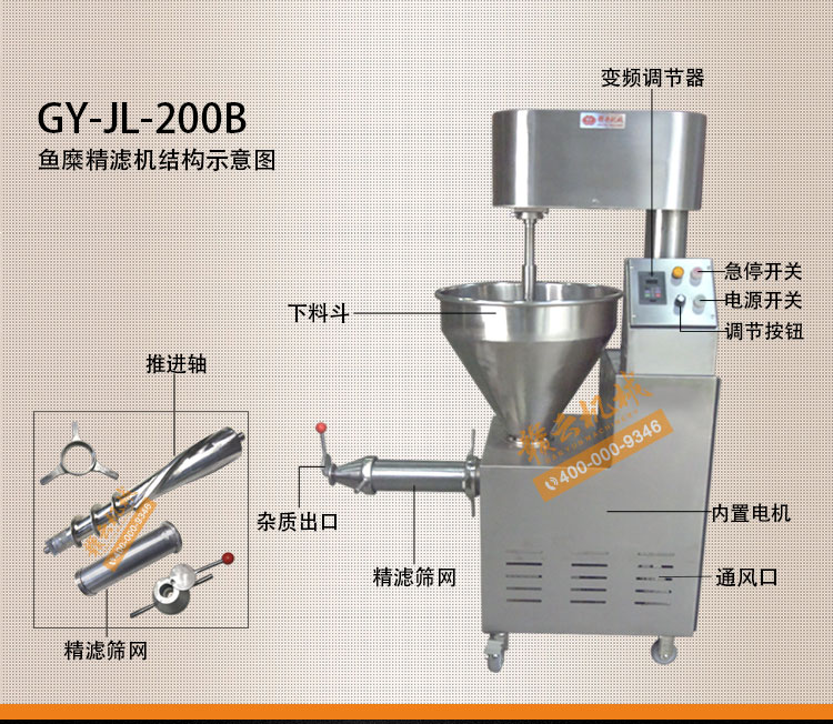 水產(chǎn)加工設(shè)備->魚肉加工設(shè)備->200變頻魚糜精濾機(jī) | |||||||