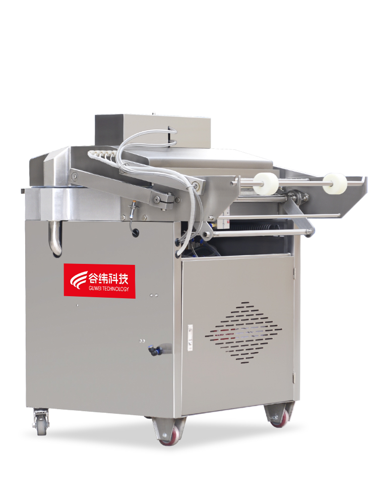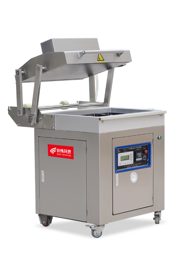 貼體真空包裝機的原理是:采用低粘度的復合膜,將物料放在下模板的托盒或膜上,在真空狀態下,將加熱板產生的熱量通過排風口 送到真空室內,給低粘度復合膜瞬間通體加熱,復合在一起,達到真空包裝的效果。 這類包裝是將膜加熱軟化后再收縮包裝,因此,不存在在包裝有尖角、硬刺的物品時將膜刺破的現象。該種包裝沒有破損率。