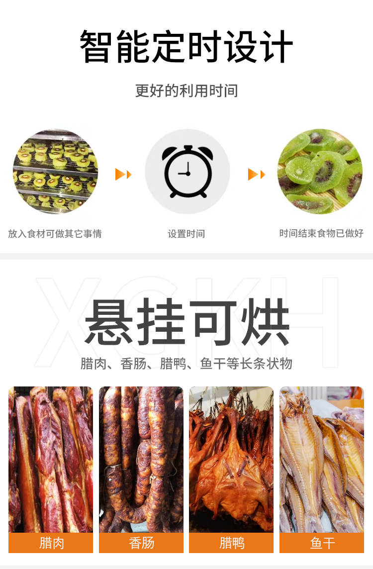 商用多功能烘干機,你知道嗎?有這樣一款多功能烘干機,它可以針對肉制品:臘腸、臘肉、板鴨等,也可以針對芒果烘干、干果烘干、蔬菜烘干等多種不同食材烘干,使用不銹鋼材質,使用大風機散熱讓機器360度立體烘干。