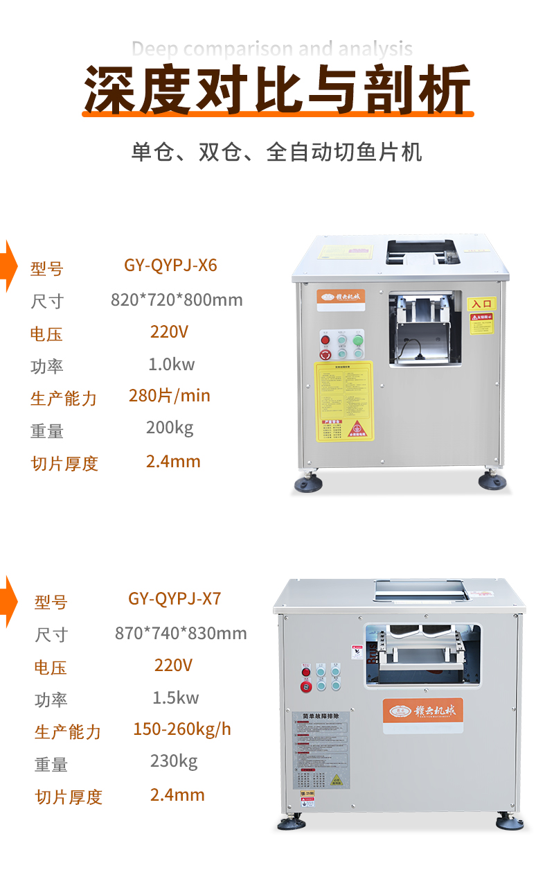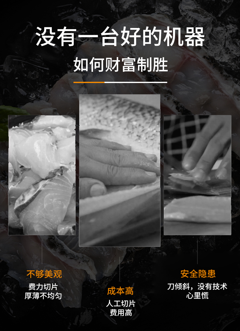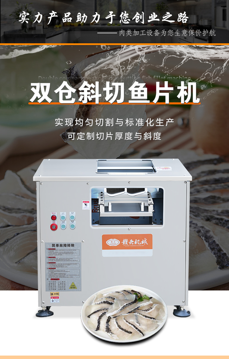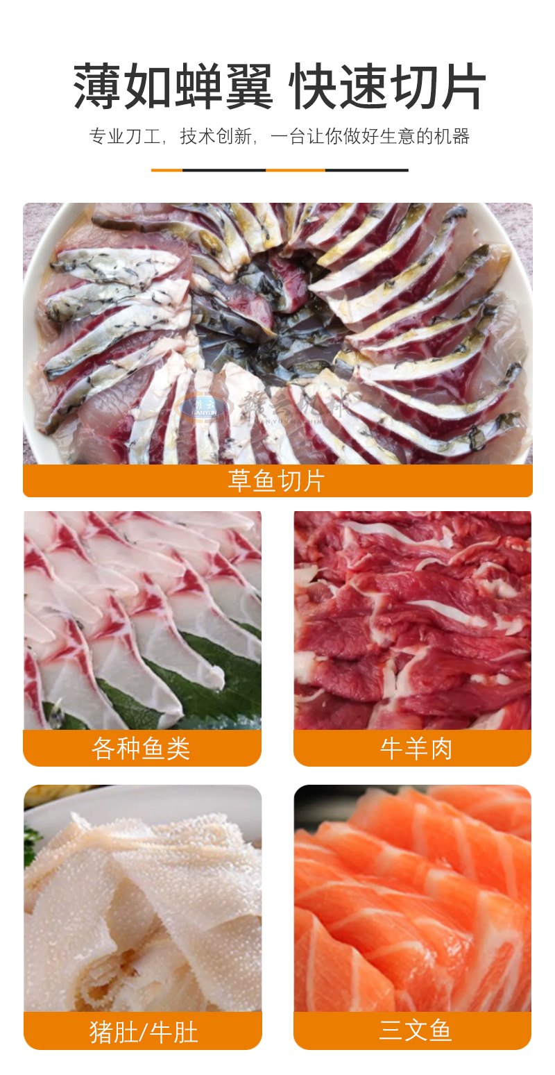 適用于各種魚肉、鮮肉的快速切片,通過斜切方式讓肉片更美觀。