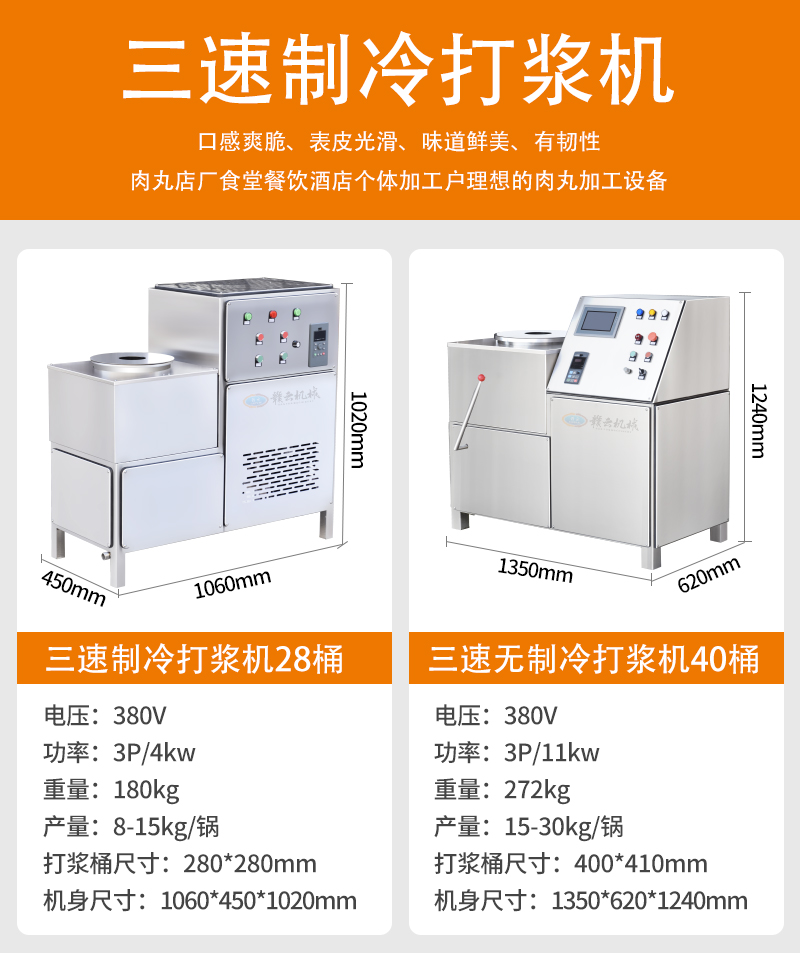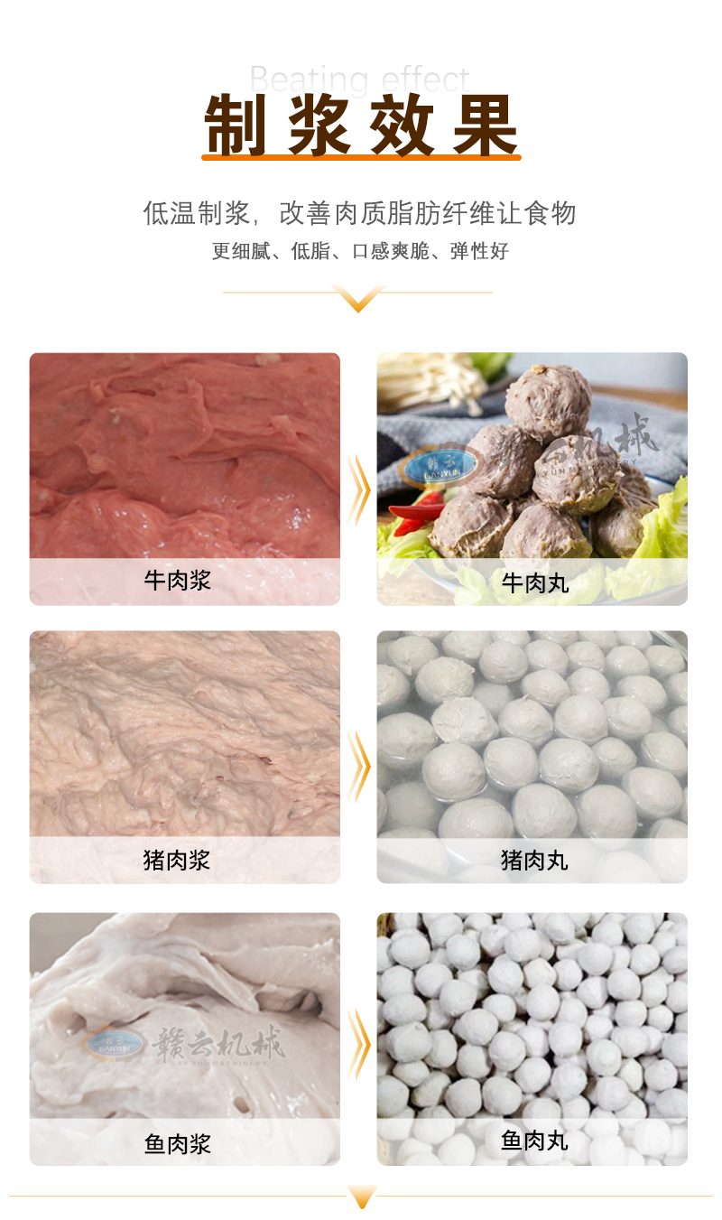 用于魚丸、牛肉丸、豬肉丸等食品的制冷打漿處理,集成自動上料、調速與制冷鎖鮮功能,適用于食品加工廠/肉丸食品廠等。