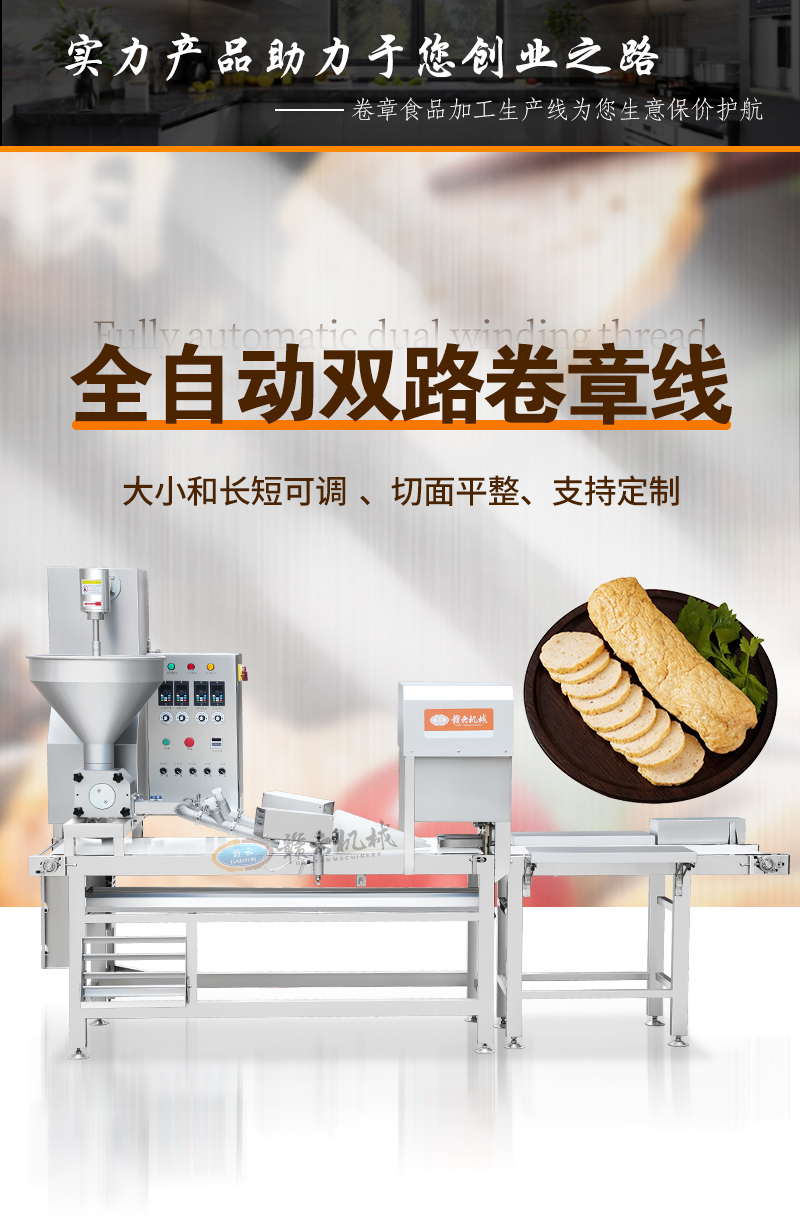 用于生產卷章、肉卷、腐皮肉卷、馬蹄肉卷、豆皮肉卷、肉餅等