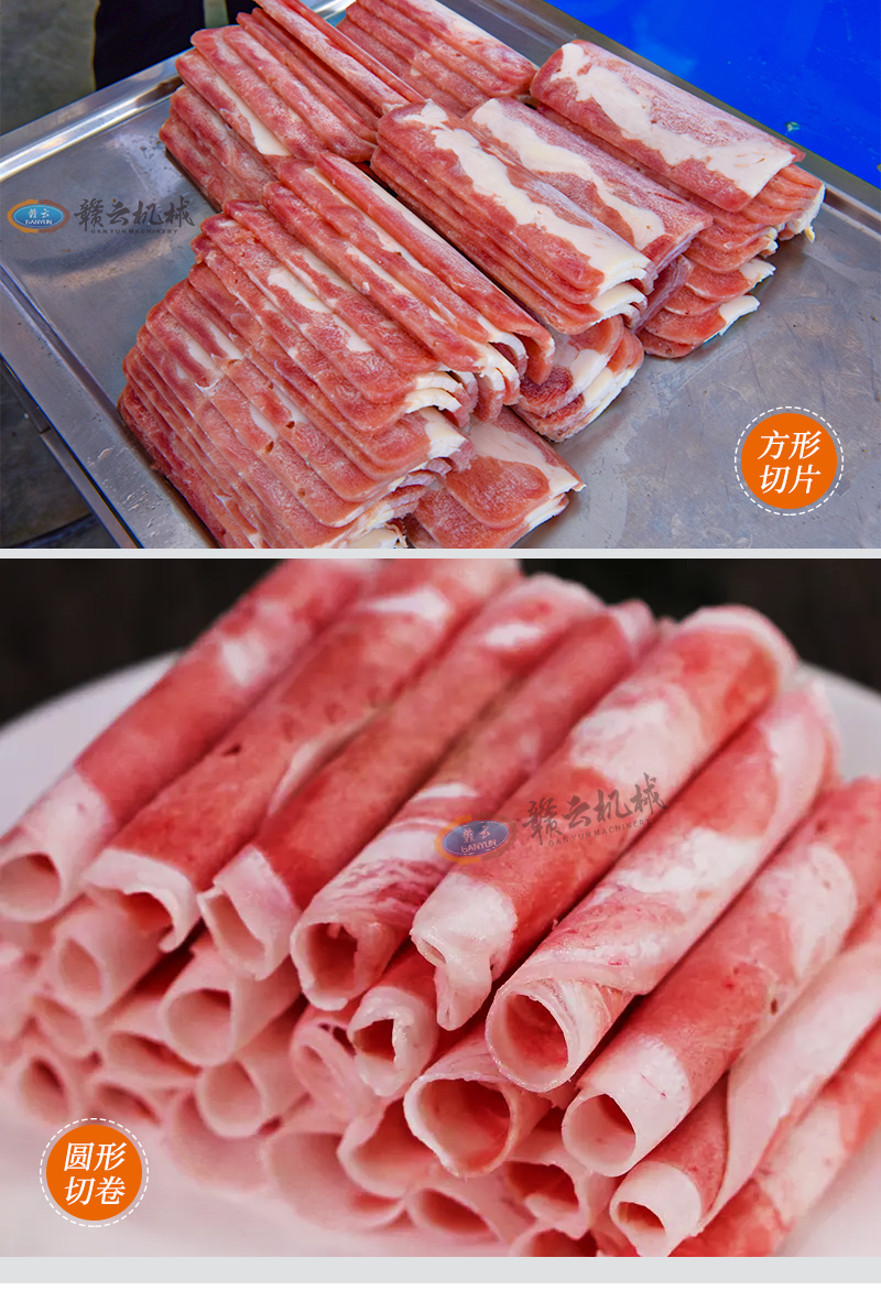 針對凍肉的切片、切卷、切條、切塊。