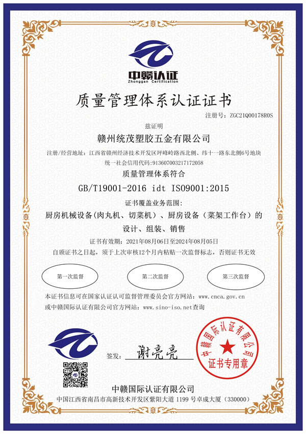 質(zhì)量管理體系認證證書