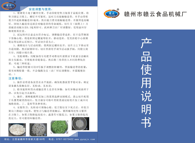 選擇贛云牌多功能切菜機,選擇贛云,選擇專業,所以放心,贛云牌多功能切菜機視頻實拍地址:贛州市贛云食品機械廠門市銷售部(贛州市客家大道180號)視頻播放地址:http://m.lcmgrrl.cn/play1.asp?ProductID=959