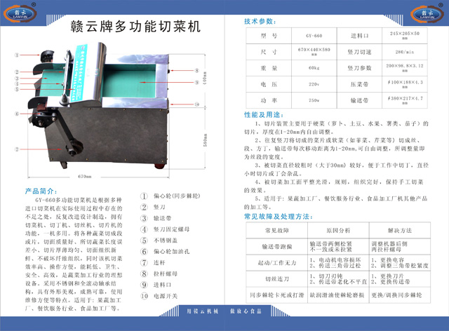 贛云牌多功能切菜機說明圖: