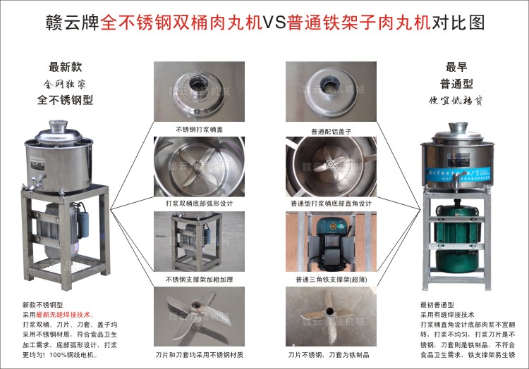 最新款全不銹鋼型肉丸機vs不銹鋼型肉丸機vs普通型肉丸機細節對比圖: