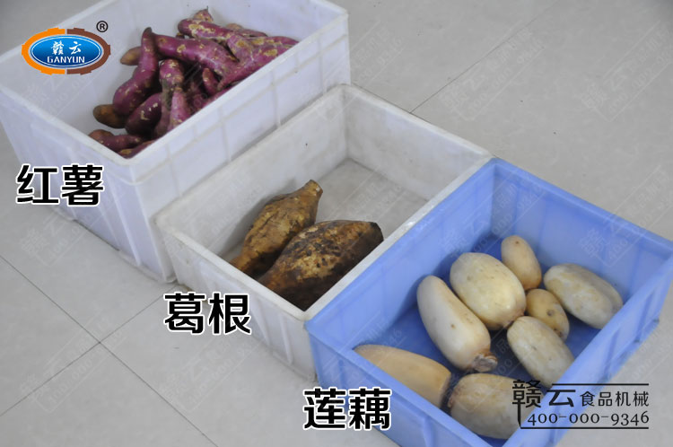 贛云SF系列紅薯刷粉機適用于加工番薯/紅薯、木薯、馬鈴薯、蕉藕、芋頭及其它塊根作物的磨碎作業(yè),加工成粉。本次拍攝GY-SF-1000型加厚款、GY-SF-850B型壓板式加厚款和GY-SF-850型紅薯刷粉機刷蓮藕、葛根、紅薯的刷粉效果,這三臺機器均配備2800r/min銅線電機,高速轉(zhuǎn)動刷粉,效果看的到。