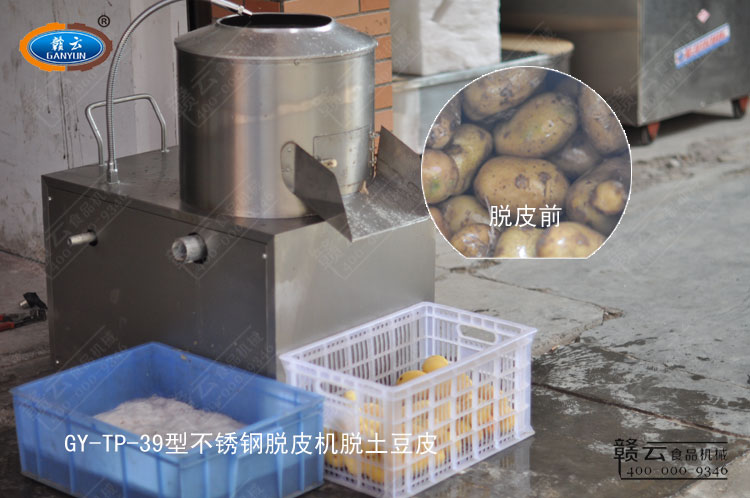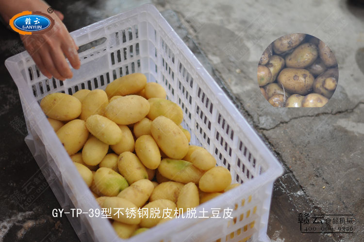 客戶體驗至上,效果滿意為旨,來自贛州本地客戶試機體驗39型不銹鋼脫皮機去除土豆皮。客戶自帶土豆試機體驗。