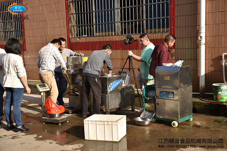 2016年4月底,來自上海客戶的實心魚丸客戶試機體驗,贛云工藝師為客戶展示了實心魚丸的機械化生產加工過程,制作出符合客戶需求的高品質魚丸,本次試機采用了魚肉采肉設備、絞肉設備、慢速魚丸打漿設備和實心魚丸成型設備。