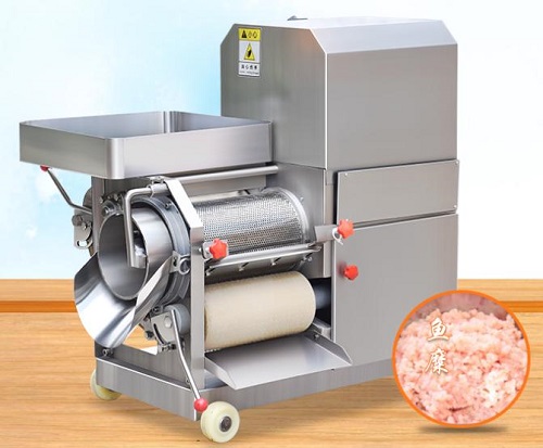 贛云牌魚肉采肉機通過裝有采肉桶和壓榨肉用的橡膠帶,利用滾動的采肉桶和傳動的橡膠帶的相互壓榨運動將魚擠入采肉桶內,而把魚皮、魚骨留在采肉桶外,由刮刀把它送出機外。