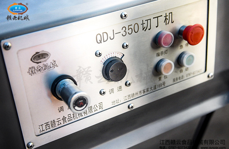 控制面板采用不銹鋼磨砂處理,激光雕刻公司logo,企業(yè)名稱及按鍵指示,使得產品具有金屬光澤,凹凸有序,一眼望去,讓我們感覺它就是切肉丁機中的王者,無形之中透入著王者霸氣。