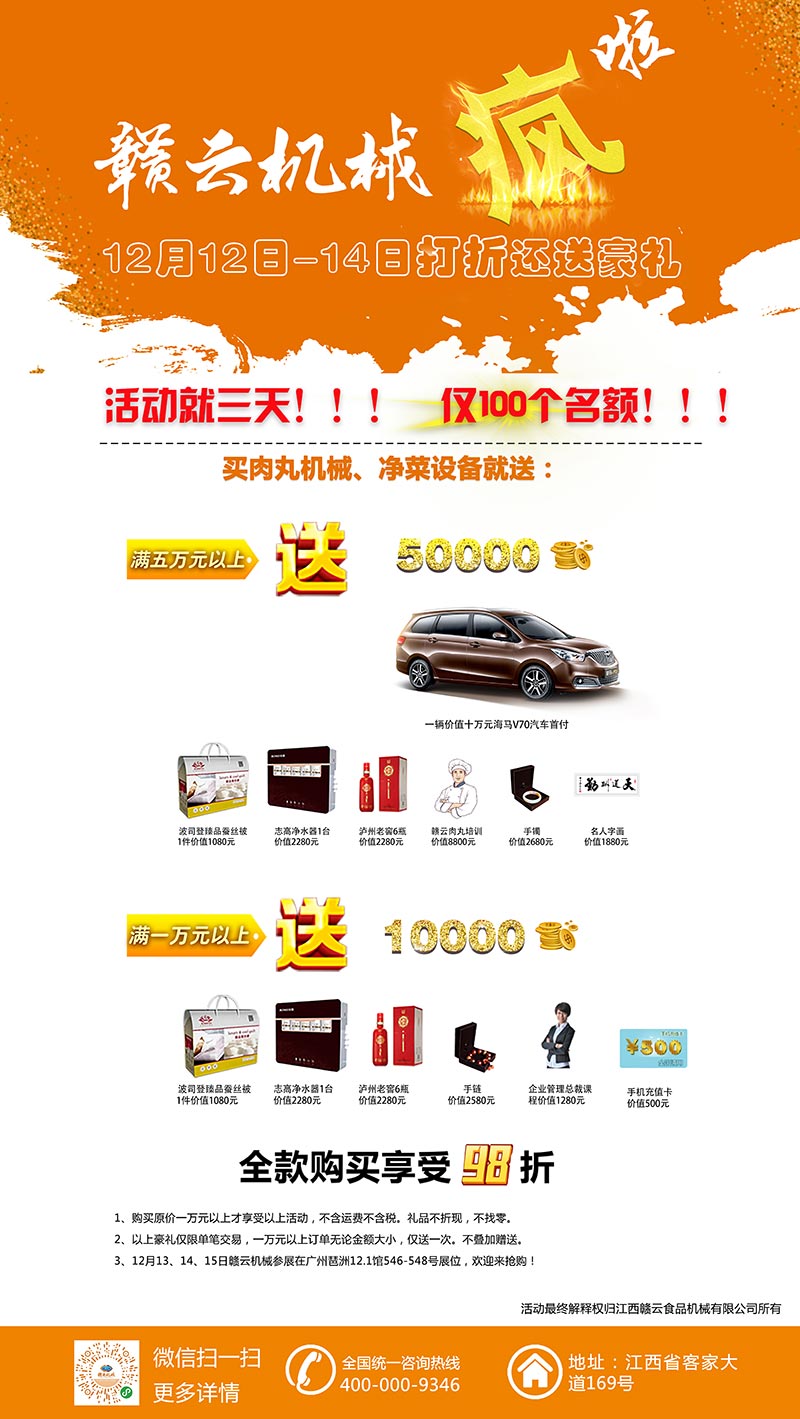 我們贛云機械攜手海馬汽車集團,研博教育集團,瀘州老窖,波司登等贊助單位鉅惠全國。史無前例的豪禮等你拿!