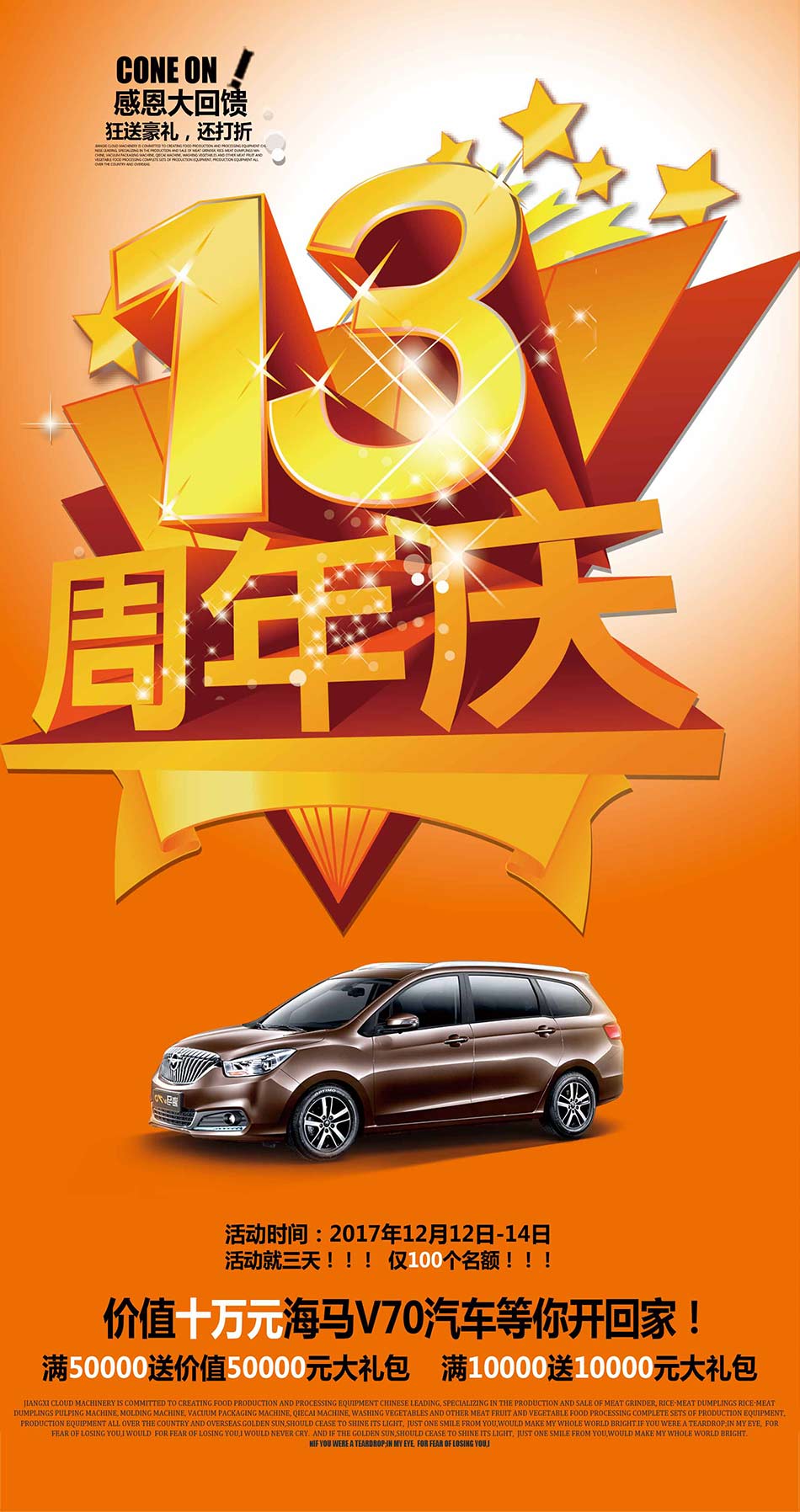 我們在12月13日-15日參加第二十四屆廣州國際酒店用品展覽會,同時舉辦年底距惠活動。買設備送車,還有折扣,年度僅限這三天,就100個名額!!!