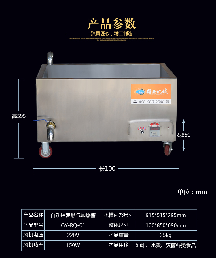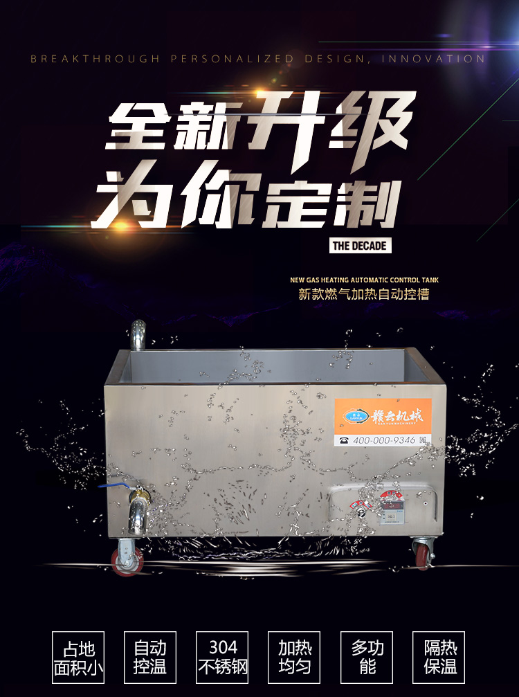 整機采用304不銹鋼材質設計,中間采用的發泡劑達到保溫隔熱作用。燃氣加熱完美的解決了眾多用戶沒有三相電的問題。