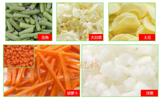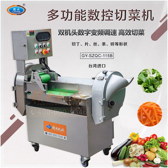 多功能數字雙變頻切菜機GY-SZQC-115B可切長條狀蔥,大蒜,韭黃,芹菜,高麗菜,大白菜,魚肉,豆干,菠菜,香蕉片,瓜類等。另更換切刀盤可切根莖類得蔬菜,如竹筍,蘿卜,馬鈴薯等切絲切片。適用于中央食堂及蔬菜加工業者。