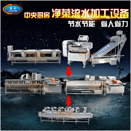 中央廚房?jī)羲O(shè)備從選菜到切割至清洗過(guò)濾,節(jié)省人力、節(jié)省水電;該設(shè)備適用于葉菜類凈菜加工切配,也適用于根莖類蔬菜的切配清洗。