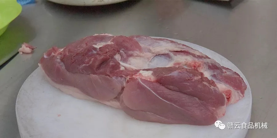 2、切塊:將顧客選用的灌腸原料肉進行切塊,切3-5cm的小塊,便于切絲時使用。